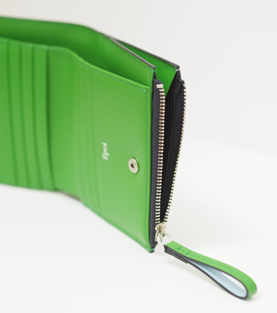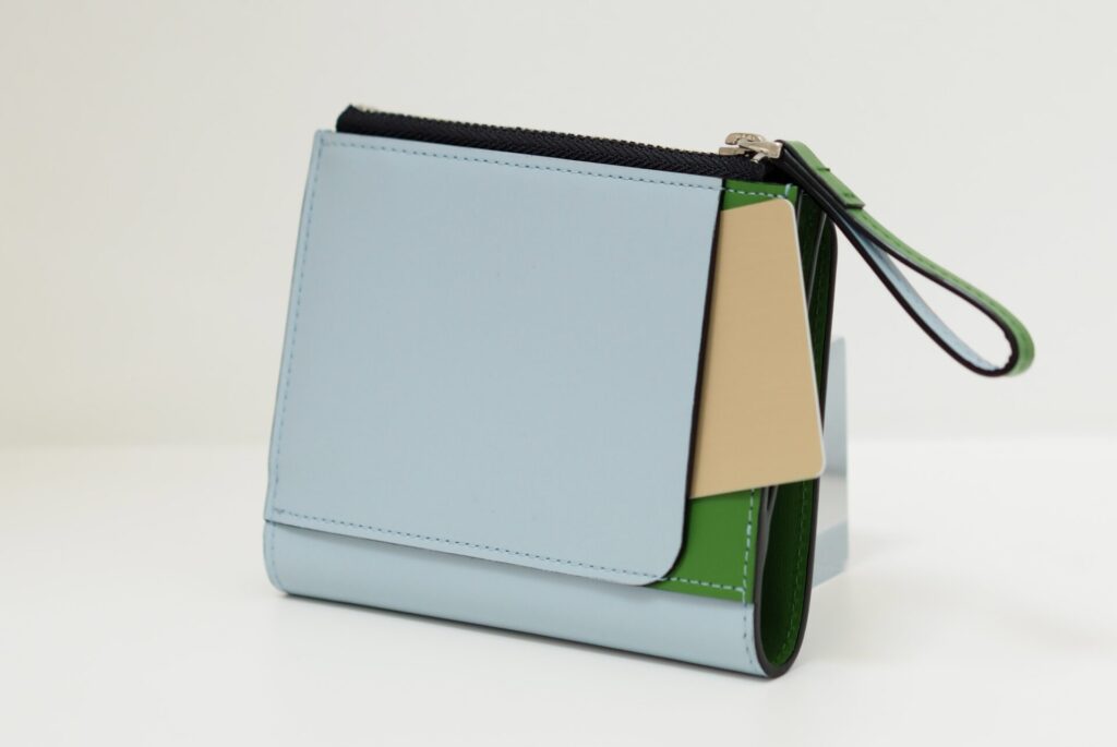 曲線デザインとコントラストカラーが際立つ、ミニマルで存在感のあるウォレットになっております!
