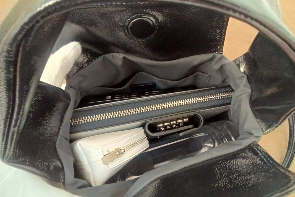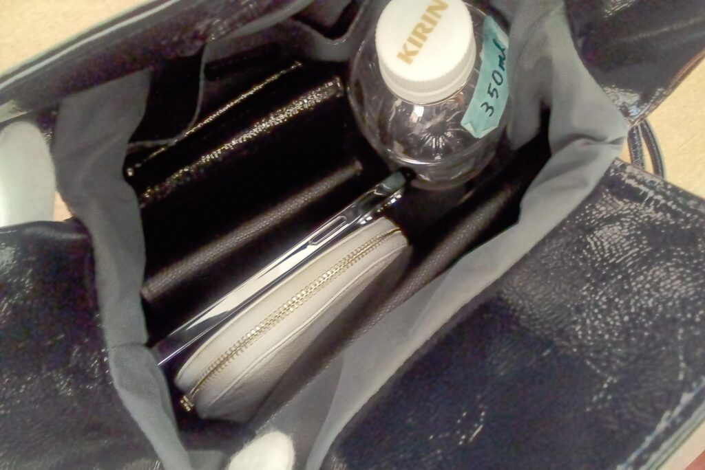 少し大きめの荷物も無理なく入れられ、500mlペットボトルも横向きで入るので、