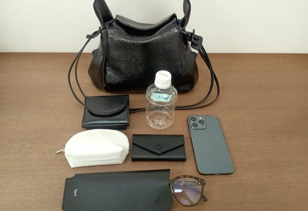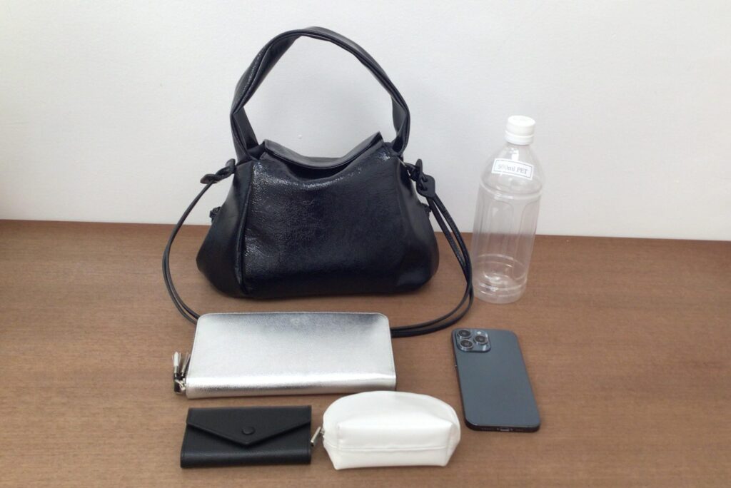 長財布・500mlペットボトル・キーケース・ミニポーチ・スマホを収納。