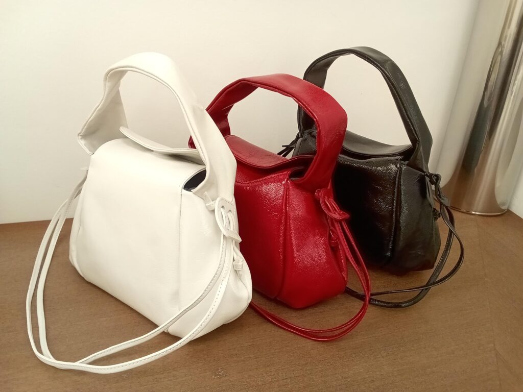 ハンドルで腕にかければ上品な印象に、ショルダーで肩がけや斜めがけにすれば