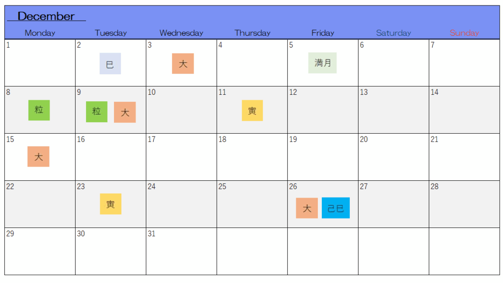 「大」大安 : 購入、入手、事始めに良いとされる日です。