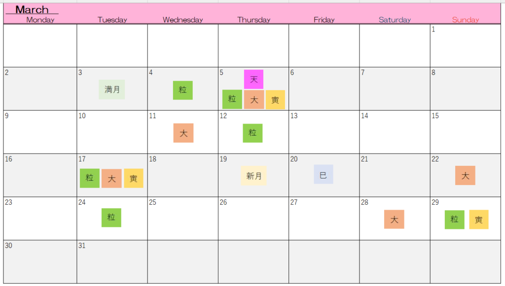 3月お財布カレンダー🎎