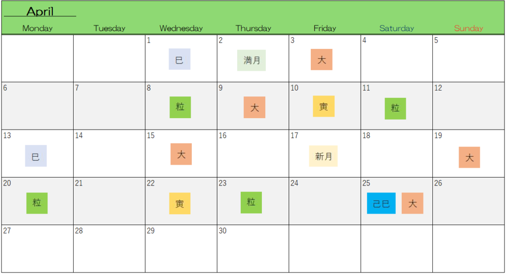 ~4月お財布カレンダー~