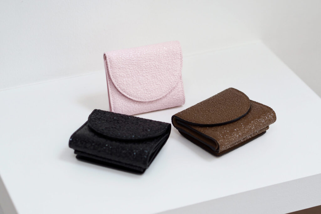 エナメル加工と型押しのコンビネーションで透明感と立体感を纏わせたコレクション。