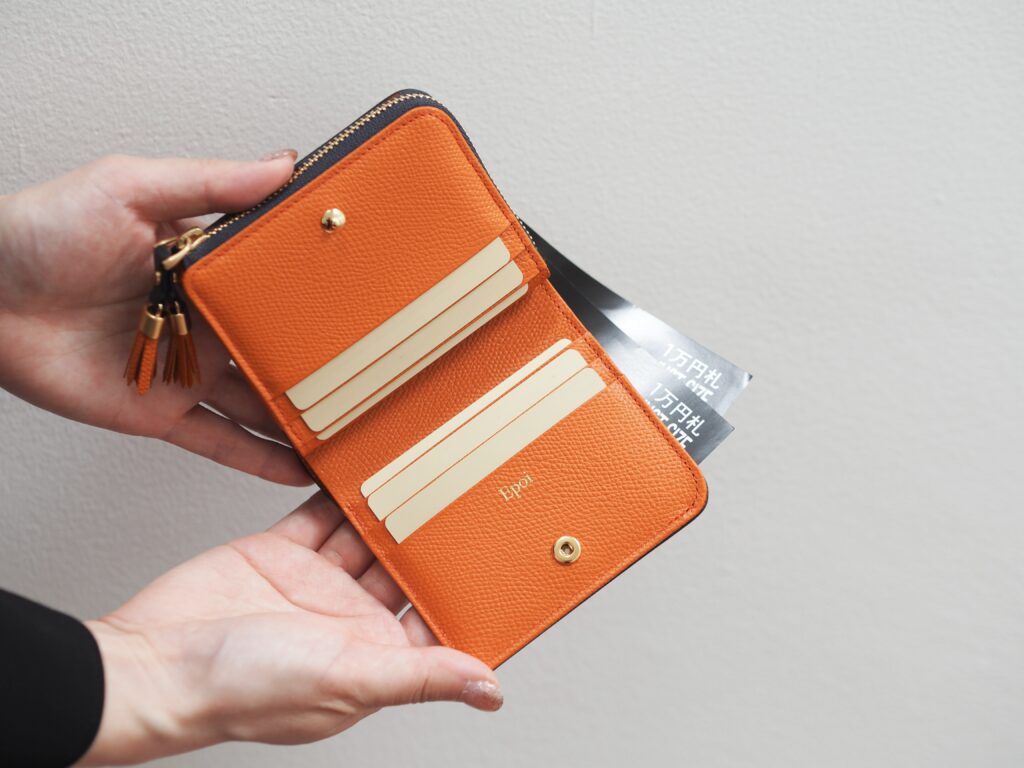 お札入れには仕切りがあるので、レシートや金額分け等、整理しながら収納可能。