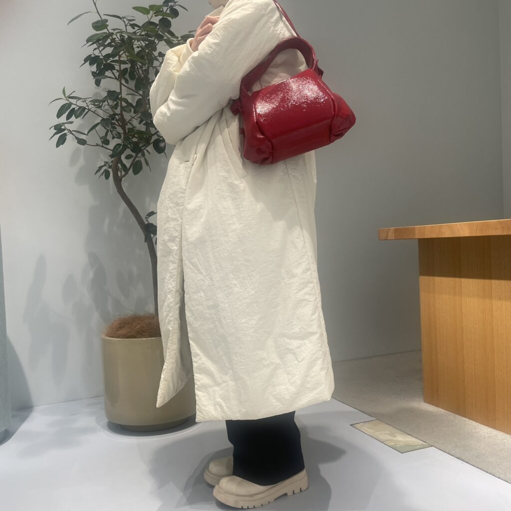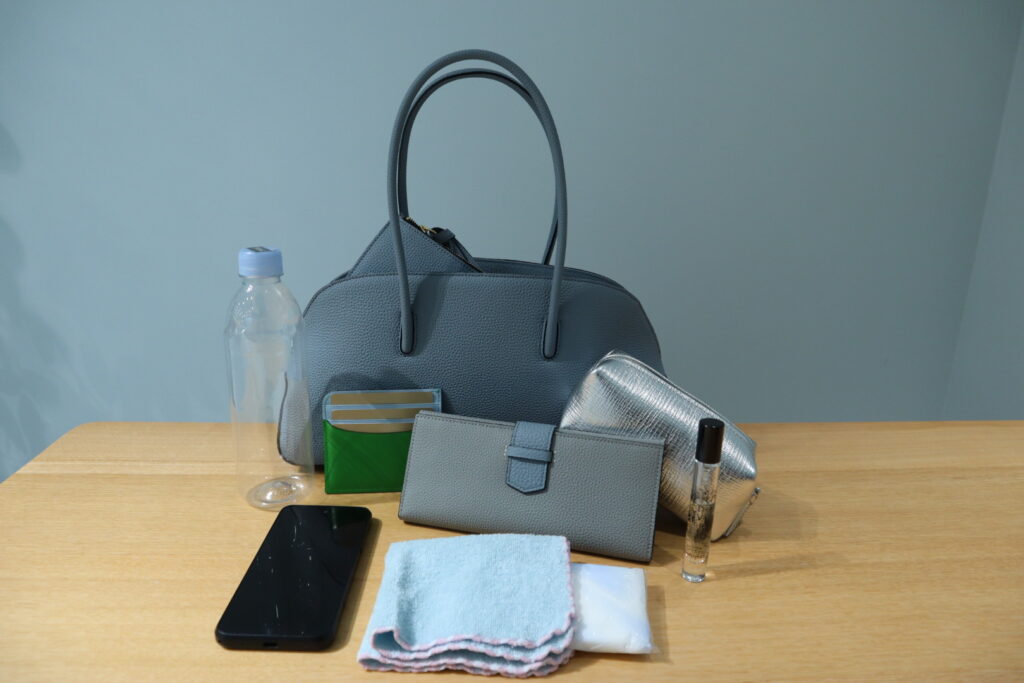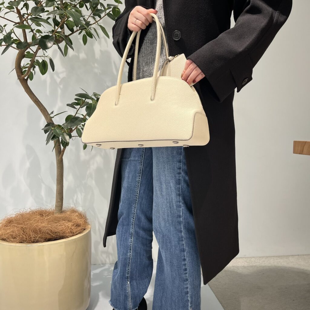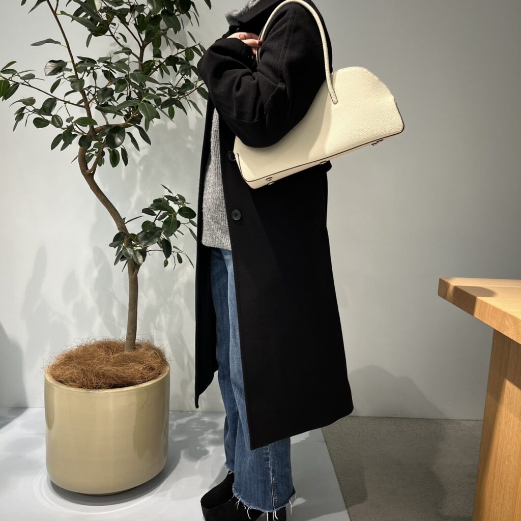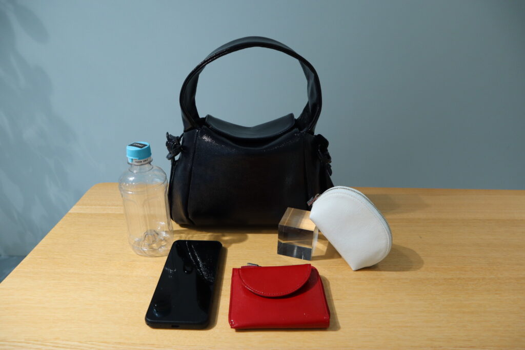 綺麗なフォルムながらも、収納力も抜群です!長財布、500mlのペットボトルも入り、