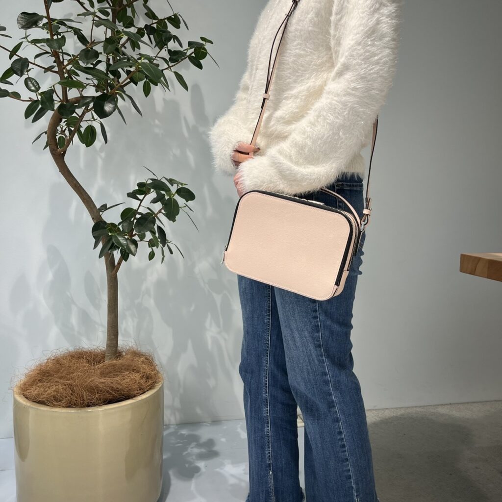 ショルダーベルトは長さ調整が可能で、一番長く伸ばすと斜め掛けもできます!