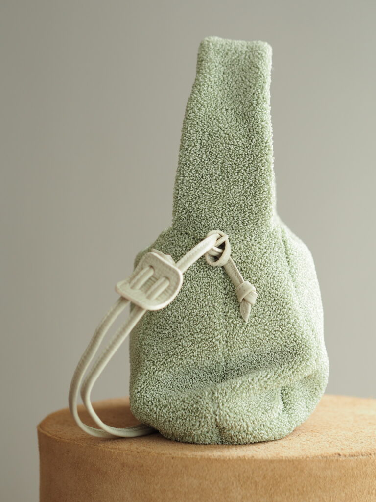 伸縮性のある糸によって織り上がったナイロンは、ソフトで特徴的な弾力がありフォルムと素材を楽しめる型です。